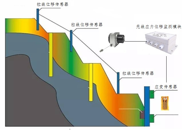 山体滑坡监测 如工业园区厂房、宿舍旁边的边坡、城中村居民楼旁边的边坡、高速公路两旁的边坡、森林公园的边坡、施工堆积的渣土、挡土墙开裂、渗水等, 均有必要进行自动化实时监测