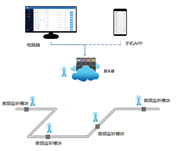 3000A型管道泄漏音频监听模块实现对供水供暖管网的远程噪音监听,通过NBIOT无线通讯技术将采集到的管网音频数据发送云平台服务器,系统自动进行频...